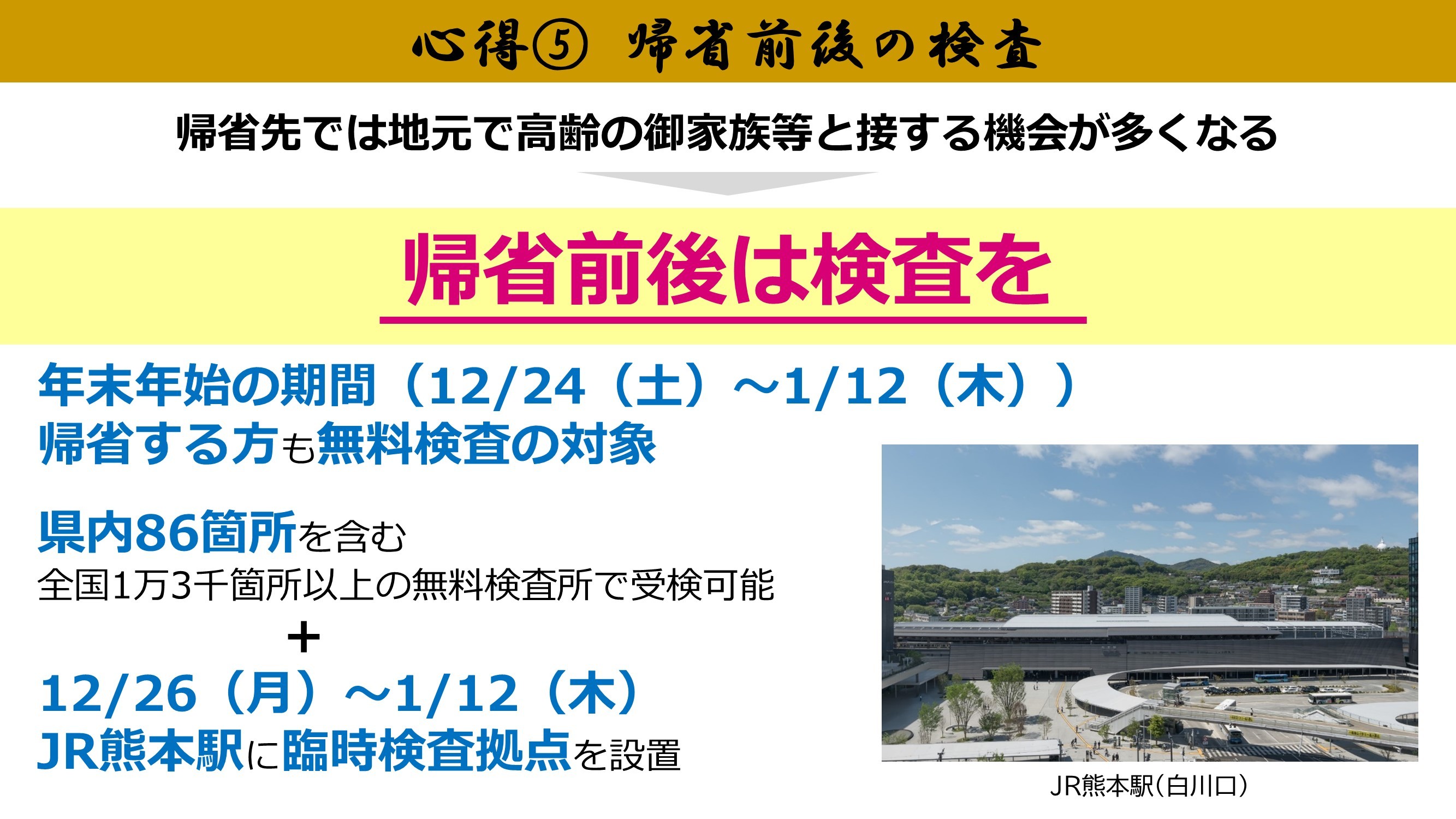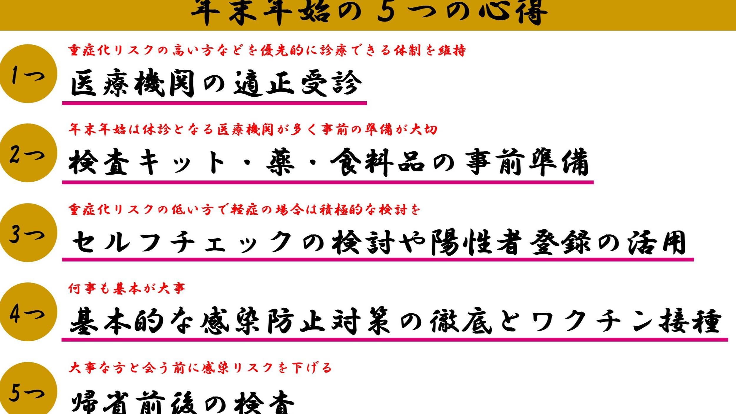 熊本県から発表された年末年始の「5つの心得」をお知らせしておきます。