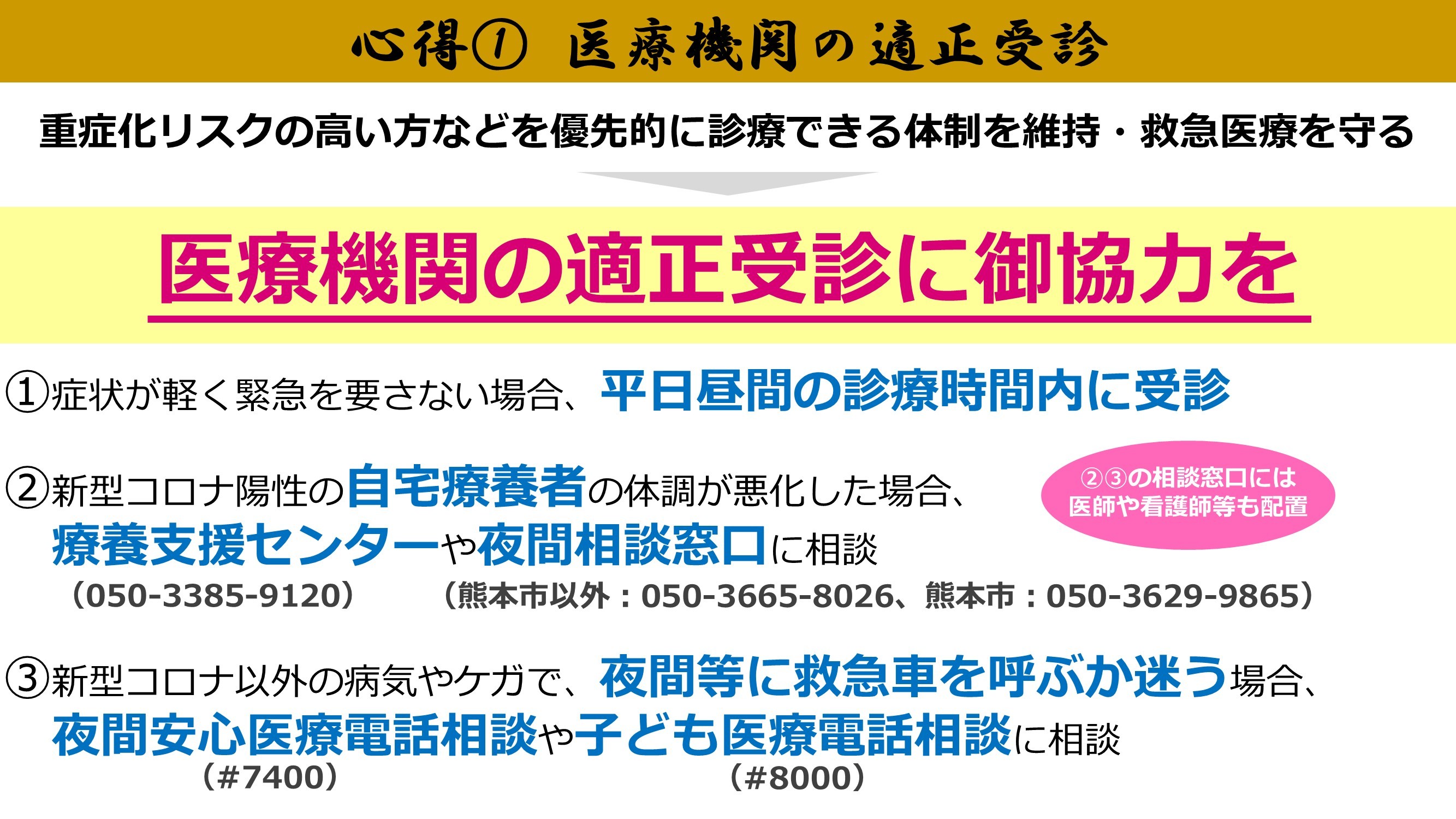 医療機関逼迫を防ぐため、ご理解のほどよろしくお願いいたします。